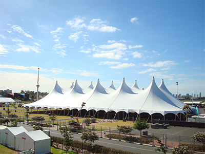 Stretch tents are modern, flexible fabric structures made from a durable, waterproof stretch material tensioned over poles.
