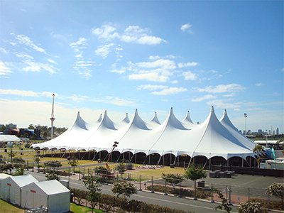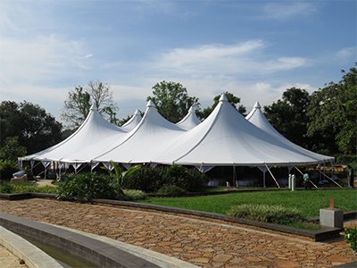 Alpine tents are modular and scalable in size, often available in widths of 10m to 30m (or more), and extendable in 3m or 5m bays to suit events of various capacities. They can also be fully customized with accessories such as glass walls, doors, flooring, lighting, drapes, linings, and branding elements.
